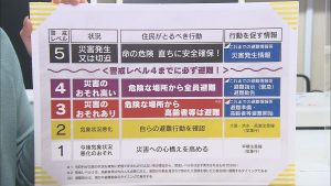 今年の5月に施行された「改正災害対策基本法」に基づき、自体から発令される避難情報が変更となりました。新しくなった避難情報では、警戒レベル3で「高齢者等避難」、警戒レベル4では避難勧告を廃止し「避難指示」のみを発令します。