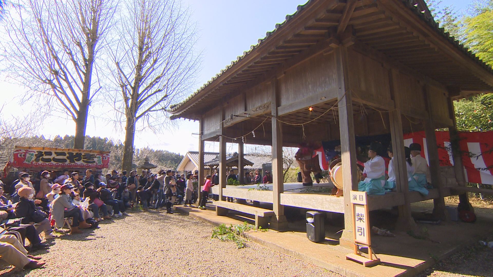 地域に伝わる「吉野棒術」や「臥龍梅太鼓」「臥龍梅音頭」などを交え、梅の開花を祝う伝統行事です。