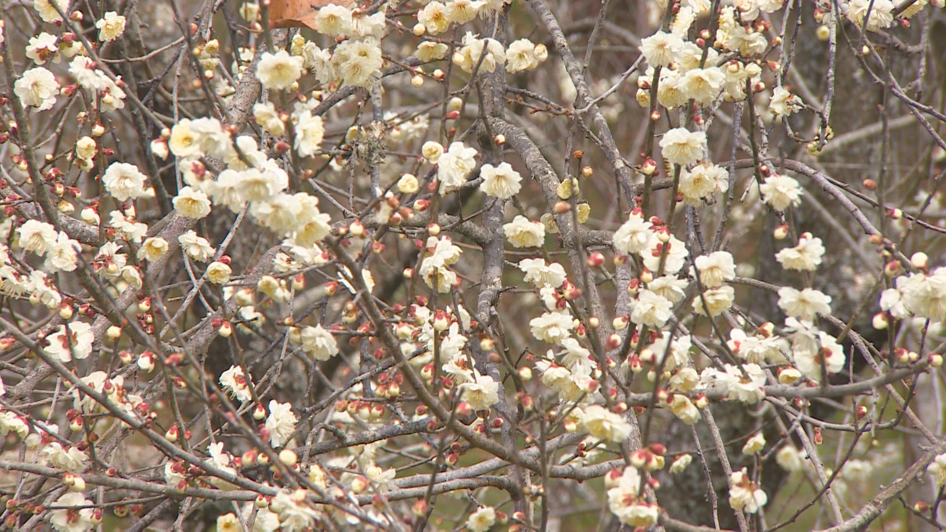 今年も寒さに負けず花開いた吉野梅園の梅。
